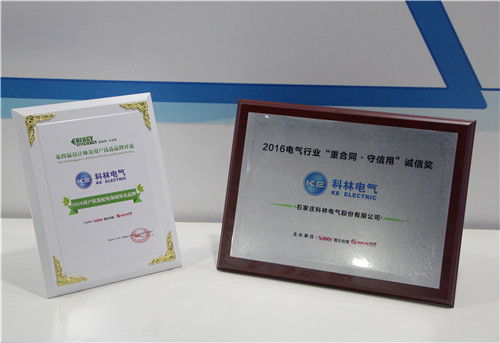 本次评选活动由国内知名媒体赛尔传媒主办,来自全国各地的403家著名电气制造企业参与角逐。科林电气在本次评选活动中荣获“电气行业‘重合同•守信用’诚信奖”和“用户优选配电领域知名品牌”两大奖项。