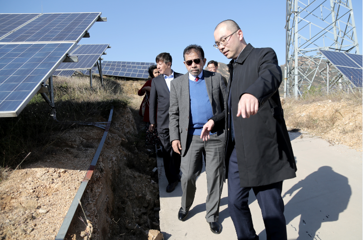 当天下午,在公司领导的陪同下,大使一行前往平山西柏坡,参观中核集团宏济20MW光伏电站和北庄光储微电网高标准示范村项目。
