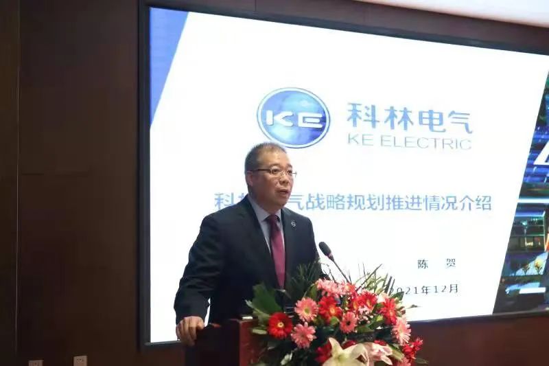 副总工程师陈贺介绍了公司战略规划推进情况,杨叔培老师发表了“厚积薄发二十载,踏浪扬帆正当时”的主题演讲,雷兵老师宣贯了《科林电气2022-2026年总体战略规划报告》。